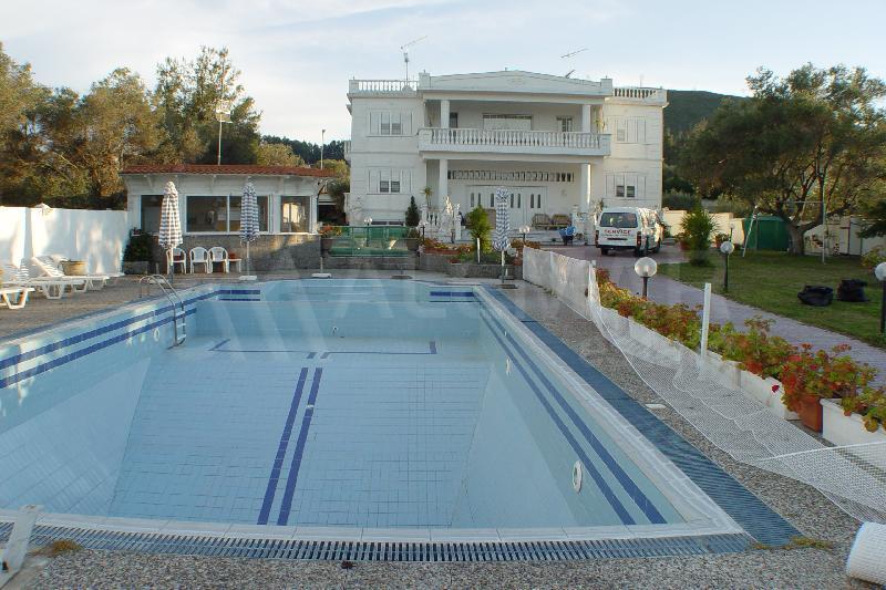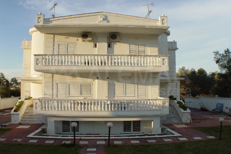 Вниманию уважаемых покупателей предлагается огромная вилла в Греции жилой площадью 600 м2 и состоящая из салона, гостиной, двенадцати спален, десяти туалетов, двух каминов, четырёх подсобных помещений и кладовок, обставленная богато и изысканно.