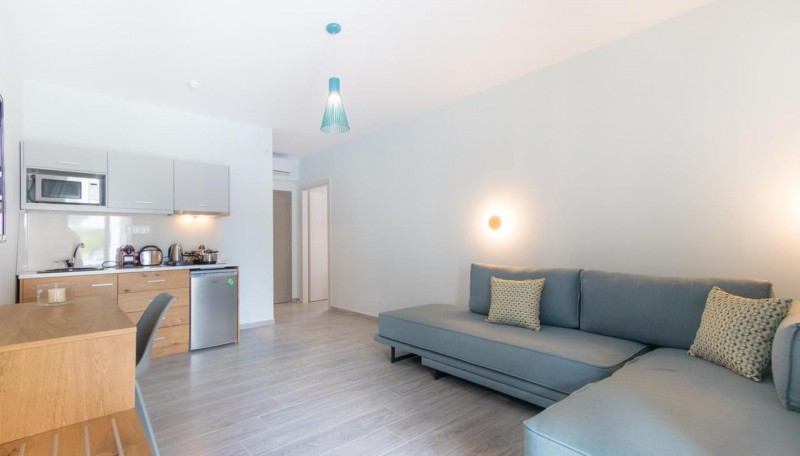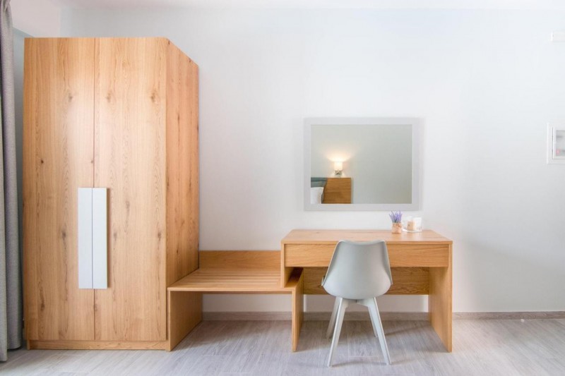 - первый этаж: 9 полностью оборудованных апартаментов (8 однокомнатных студий с душевой и 1 двухкомнатный апартамент);