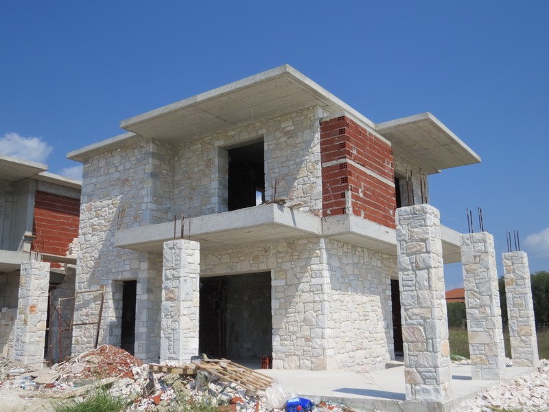 Выставлены на продажу 3 трехуровневых коттеджа в стадии незавершенного строительства, расположенные в тихом, небольшом курортном поселке полуострова Кассандра, Халкидики.